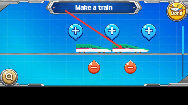 2、在Make a train頁,點加號加車廂,加上減號減車廂,組合成完整列車。