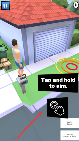 1、在游戲初始界面,長(zhǎng)按屏幕瞄準(zhǔn),利用Tap-and-hold-to-aim操作,讓角色精準(zhǔn)跳躍向目標(biāo)。