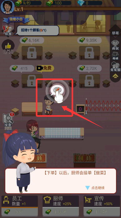 2、顧客AI具有記憶功能,玩家需要記住特色菜品并主動(dòng)推薦給其他食客,通過培養(yǎng)??腿后w能夠獲得穩(wěn)定的收入來源。
