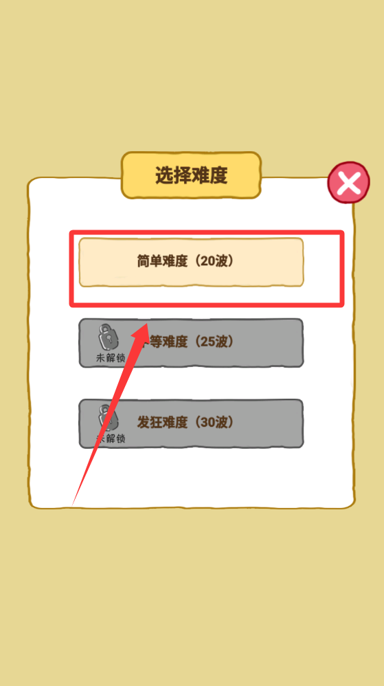 2、先挑戰(zhàn)一下簡(jiǎn)單難度級(jí)別20波。