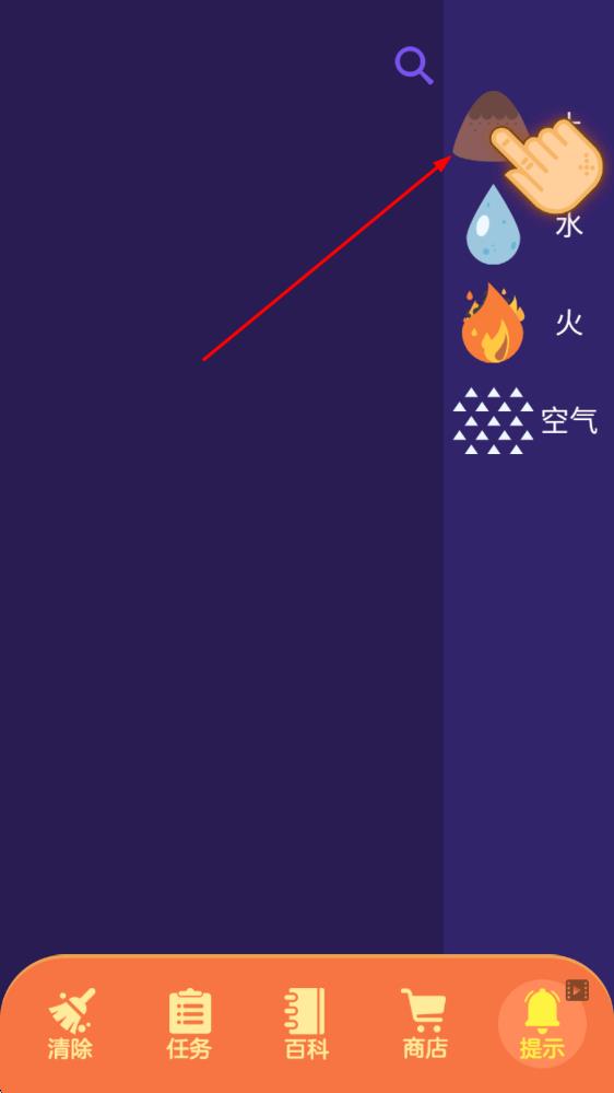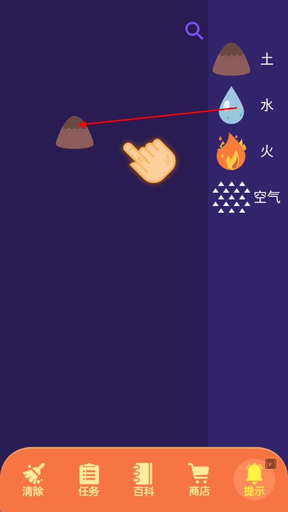 1、進(jìn)入游戲,從基礎(chǔ)的四種元素開(kāi)始,嘗試拖拽泥土和水進(jìn)行組合,合成“泥”,以此熟悉元素合成的基本操作,開(kāi)啟煉金探索。