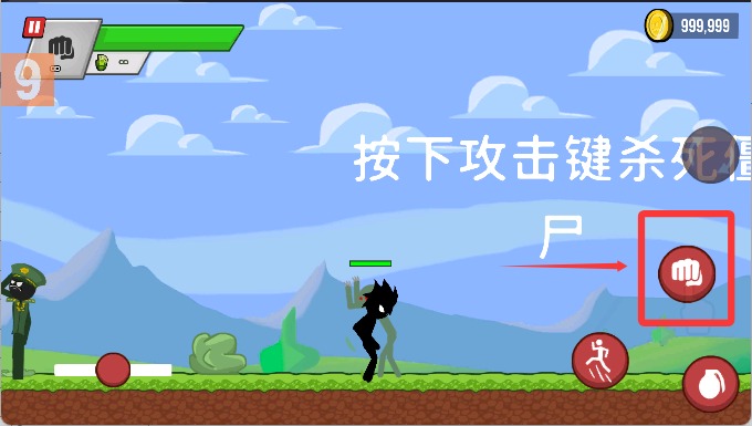 2、遇到僵尸后按下攻擊鍵殺死僵尸。
