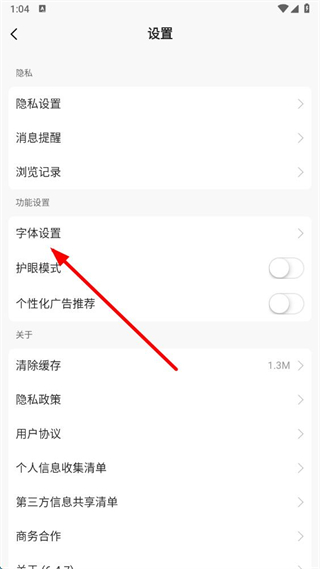 3、在設置頁面點擊字體設置選項,進入字體設置頁面。
