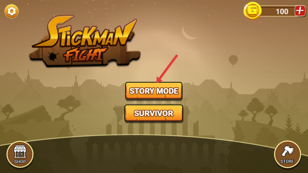 1、打開(kāi)Stickman Fight游戲,點(diǎn)擊STORY MODE進(jìn)入故事模式開(kāi)啟闖關(guān)。