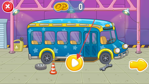 1、進入游戲界面,點擊黃色的播放按鈕,開啟汽車維修和清潔的游戲挑戰(zhàn)。