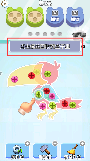 3、進(jìn)入作畫后,點(diǎn)擊圖示按鈕即可發(fā)射螺絲。