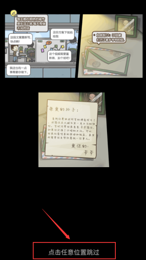 2、點擊紅框任意位置,跳過當(dāng)前劇情對話內(nèi)容。