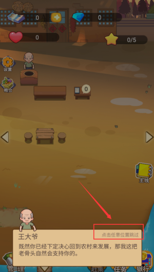 3、點擊紅框跳過按鈕,繼續(xù)王大爺?shù)膭∏閷υ挕?