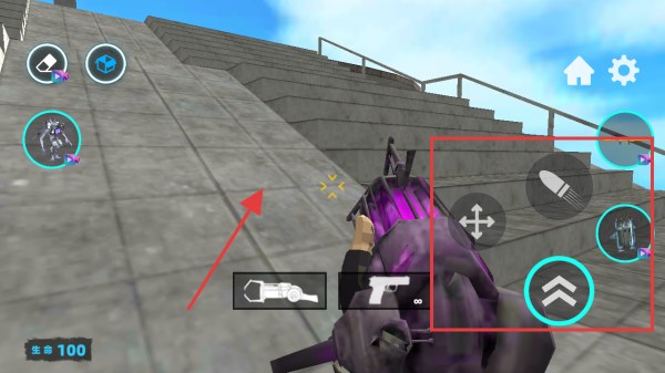 2、利用紅色方框內(nèi)的虛擬按鈕控制角色的移動(dòng)和使用道具,開(kāi)始進(jìn)行游戲任務(wù),推進(jìn)游戲的劇情發(fā)展。