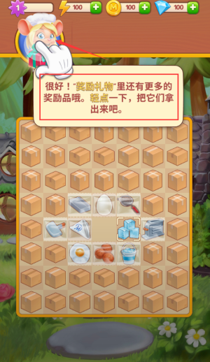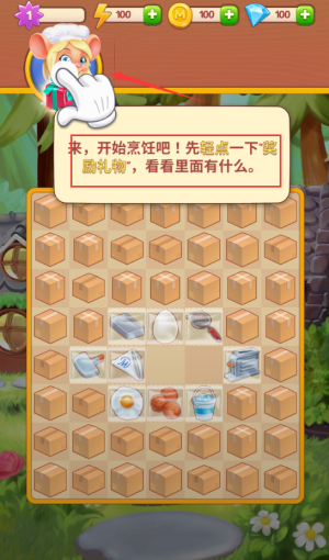 2、點(diǎn)擊紅框獎(jiǎng)勵(lì)禮物按鈕,查看初始烹飪游戲道具。