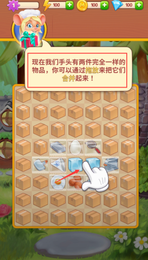 3、按照紅框箭頭提示,拖放相同物品進(jìn)行合并升級(jí)。