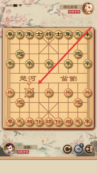 3、進入棋壇新客對戰(zhàn)棋盤后,點擊紅方兵的位置,按照象棋規(guī)則移動該棋子,推進棋局進程。