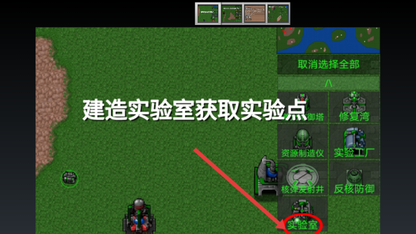 1、一開局點到實驗室,開局點擊建筑如指揮中心,造實驗室右側(cè)紅圈獲實驗點,需要解鎖高級的單位。