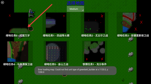 2、選擇地圖時,優(yōu)先挑綠地任務(wù)0-元首萬歲等簡單關(guān)卡熟悉操作,遇加載報錯如提示找不到單位,選擇其他。