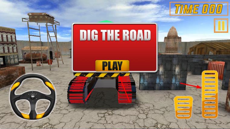 1、進(jìn)入界面,點(diǎn)擊PLAY按鈕,開(kāi)始游戲,操控重型建筑機(jī)械,進(jìn)行道路建設(shè)。