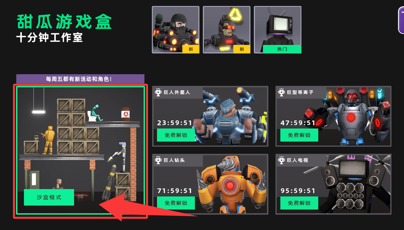 2、點(diǎn)擊紅色框框的沙盒模式開始玩。