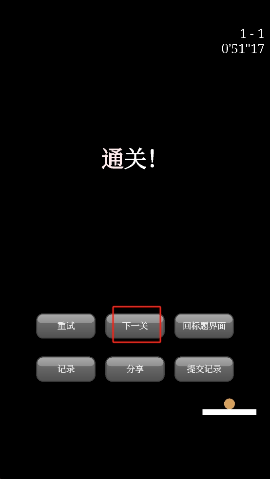 3、擊碎當(dāng)前場(chǎng)景所有磚塊后,界面會(huì)顯示擊碎的用時(shí),點(diǎn)擊下一關(guān)按鈕,進(jìn)入更難的關(guān)卡,挑戰(zhàn)新布局的磚塊。