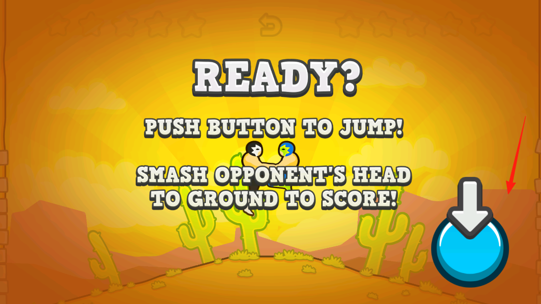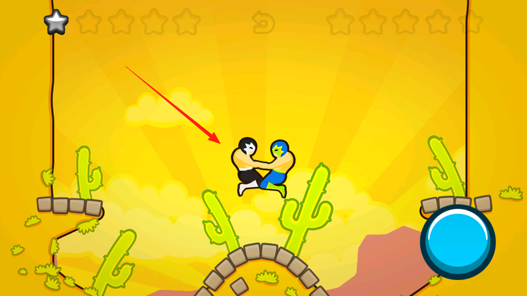 2、操控角色與對(duì)手扭打,在仙人掌地形間移動(dòng),借助跳躍跨越障礙維持格斗姿態(tài),通過(guò)調(diào)整動(dòng)作方向,爭(zhēng)奪對(duì)戰(zhàn)優(yōu)勢(shì)推進(jìn)格斗進(jìn)程。