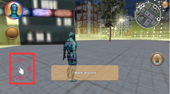 2、移動左邊搖桿可以讓人物進行前行。