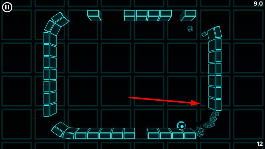 3、控制周圍磚塊轉(zhuǎn)動引導小球,防止其掉落屏幕,收集所有白點并維持小球生存,挑戰(zhàn)更高關卡與更長生存時間。