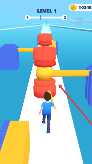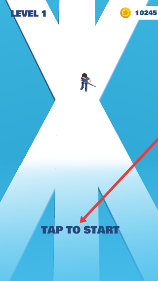 1、點(diǎn)擊TAP-TO-START按鈕開(kāi)啟LEVEL-1,操控角色踏上闖關(guān)路,此時(shí)金幣為10245,準(zhǔn)備迎接前方未知障礙考驗(yàn)。