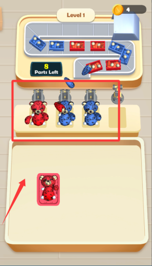 2、修理完成后按顏色或款式分類(lèi),把相同類(lèi)型的小熊放入對(duì)應(yīng)包裝盒,避免放錯(cuò)影響后續(xù)流程和得分。
