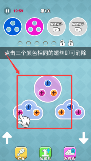 3、畫風(fēng)清新界面直觀,用色彩區(qū)分螺絲類型與旋轉(zhuǎn)方向,降低學(xué)習(xí)成本,讓注意力集中于策略制定。