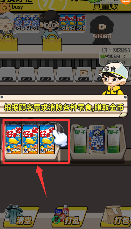 2、根據(jù)顧客需求消除各種零食,賺取金幣升級。