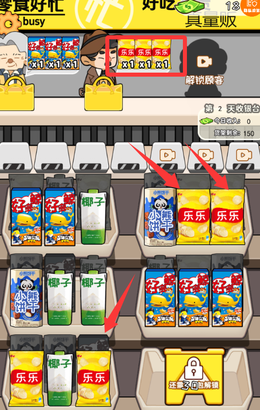 4、這個顧客需要3包薯片,點擊下面3包薯片。
