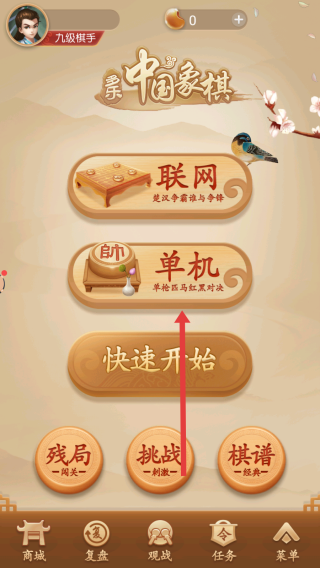 1、點(diǎn)擊主界面單機(jī)按鈕,進(jìn)入中國象棋單機(jī)對戰(zhàn)模式,開啟單槍匹馬的紅黑棋子對決之旅。