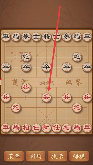 2、在棋盤界面,點(diǎn)擊紅方中間的兵,使其向前移動一格,邁出開局布局的第一步。