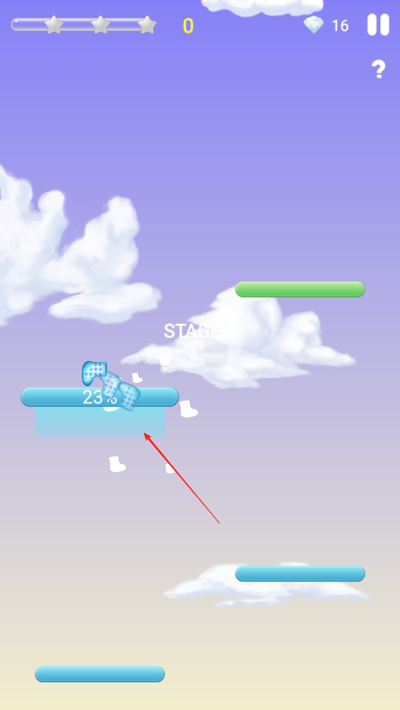 1、通過點(diǎn)擊屏幕控制小球跳動(dòng),小球球下落落在同色的平臺(tái)上就會(huì)加分,需要三星才能通關(guān)。