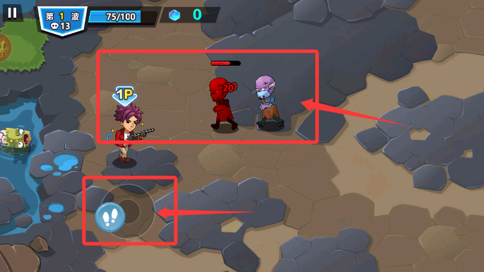 2、使用虛擬搖桿控制人物走位,及時點擊射擊鍵消滅逼近的喪尸。