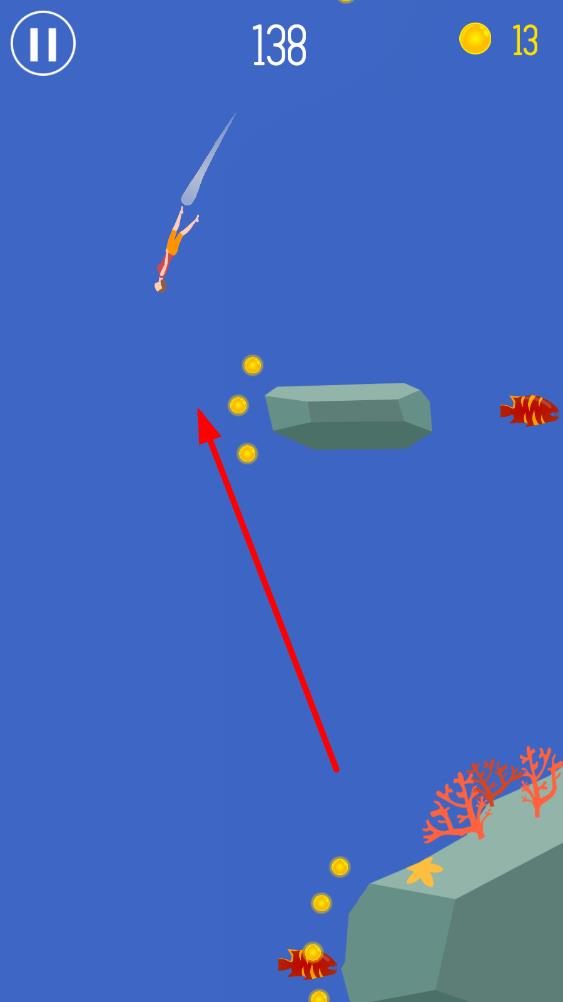 2、在潛水中收集沿途金幣,留意周圍動靜,發(fā)現(xiàn)鯊魚等危險生物時及時調(diào)整方向躲避,避免被追擊導致失敗。