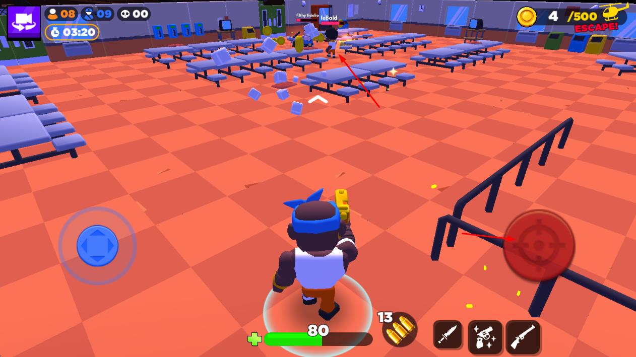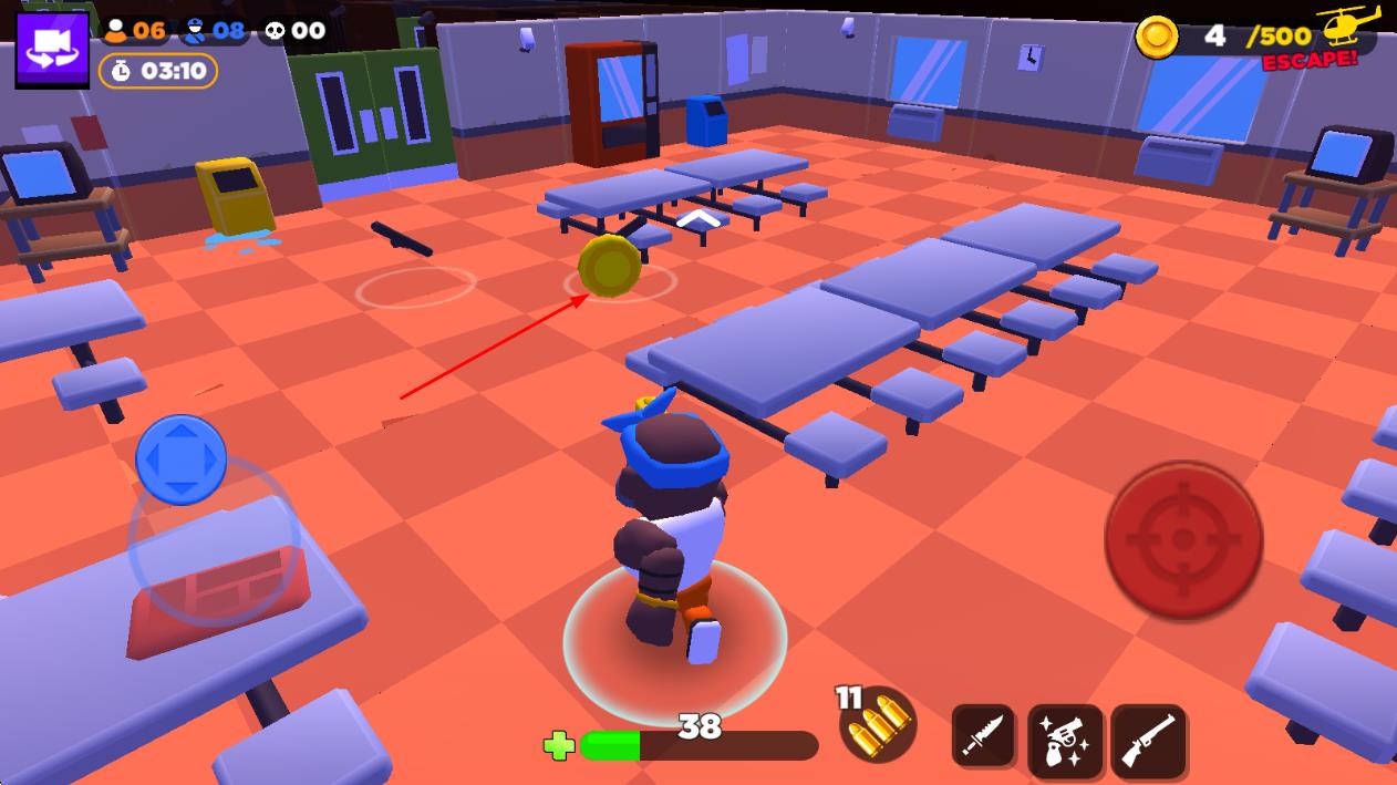 2、資源獲取機(jī)制:通過(guò)摧毀場(chǎng)景中桌椅木箱等物品獲取金幣,用金幣在指定補(bǔ)給點(diǎn)兌換武器、彈藥和逃脫工具,形成生存循環(huán)。
