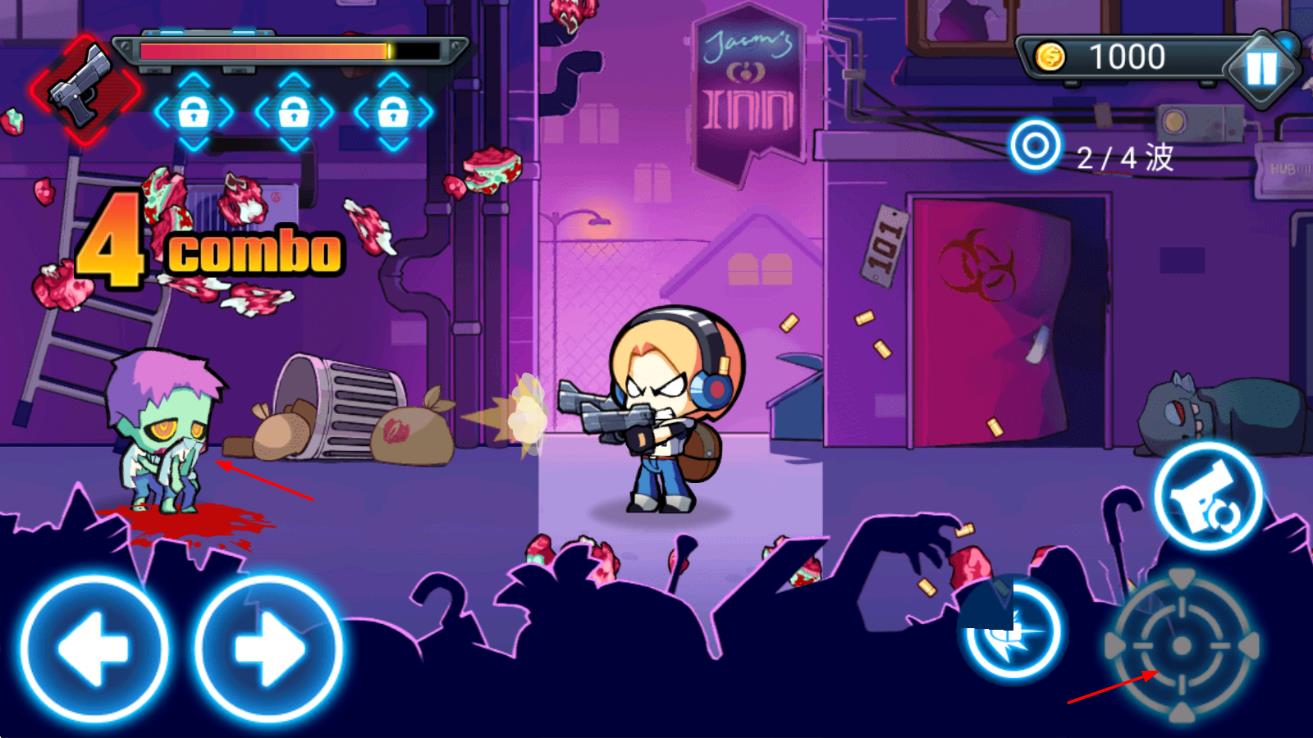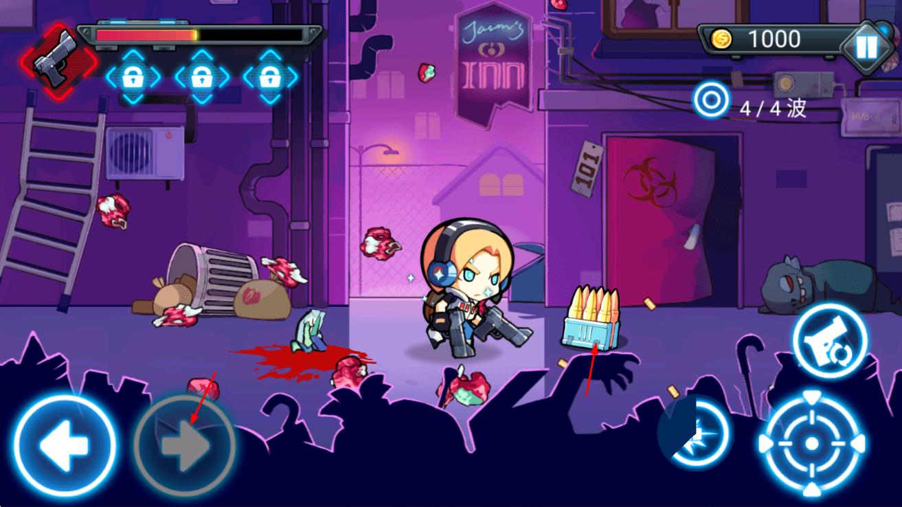 3、橫版闖關(guān)玩法:經(jīng)典橫版卷軸式關(guān)卡設(shè)計,包含街道、實驗室、墓地等場景,關(guān)卡中設(shè)置機關(guān)陷阱與隱藏補給,豐富闖關(guān)體驗。