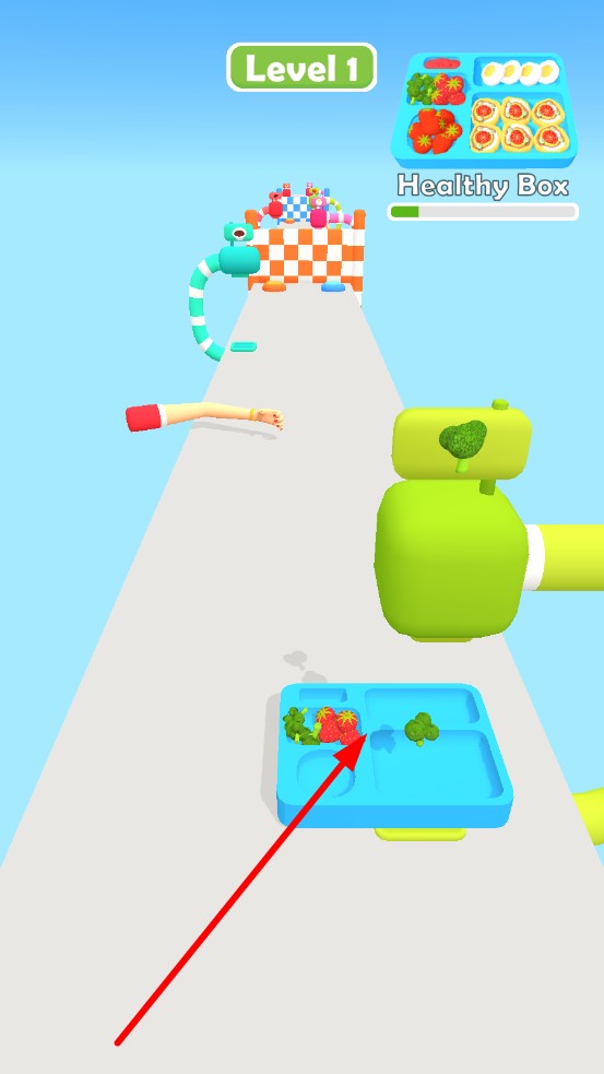 1、長按滑動(dòng)屏幕控制餐盤移動(dòng),餐盤分區(qū)對應(yīng)食材類別,開局先觀察右上角目標(biāo)餐盤,記住食材的位置,避免收集錯(cuò)區(qū)。