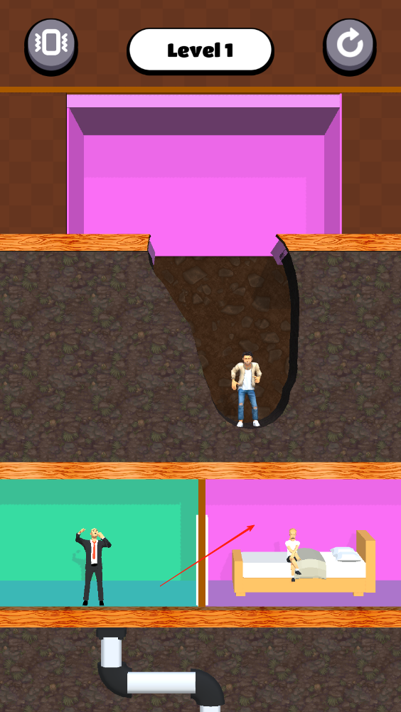 1、滑動(dòng)屏幕將中間的土劃開,讓男生找到房間里的女生和她重聚,即可完成這一環(huán)節(jié)。
