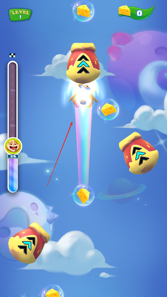 3、收集當(dāng)前關(guān)卡所有奶酪即可通關(guān),且旁邊的進(jìn)度條到頂,即可完成當(dāng)前關(guān)卡,進(jìn)入下一關(guān)。