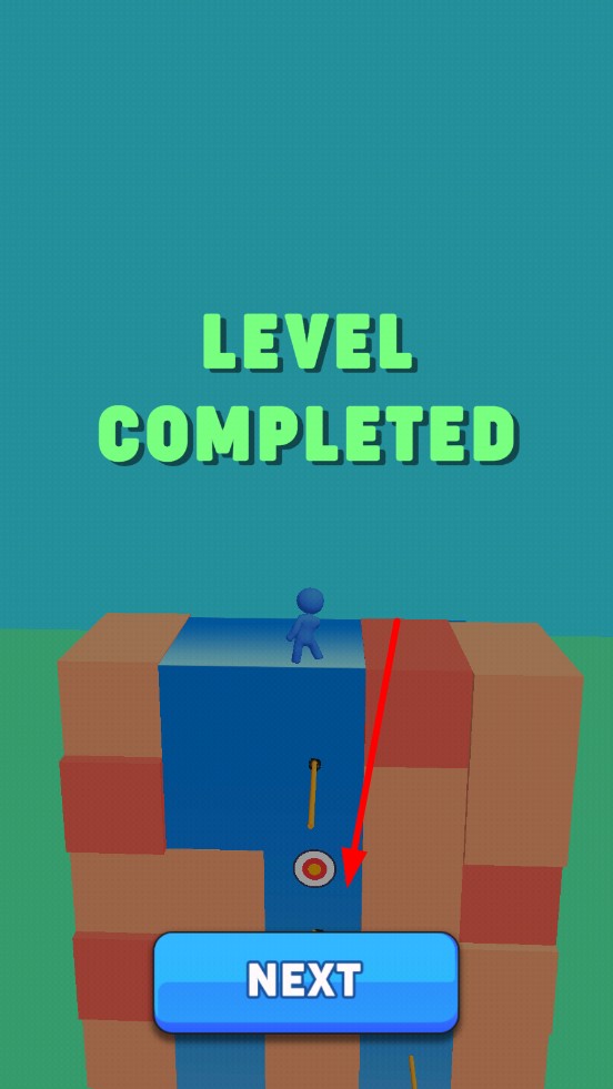 3、成功擊破所有靶心后,小人抵達(dá)終點(diǎn),彈出LEVEL COMPLETED界面;點(diǎn)擊NEXT按鈕進(jìn)入下一關(guān)。