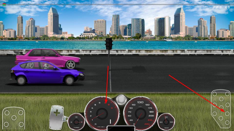 2、進(jìn)入城市賽道,通過(guò)虛擬儀表盤與按鍵操控車輛,踩油門加速,左右按鍵轉(zhuǎn)向,與對(duì)手競(jìng)速。