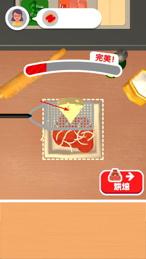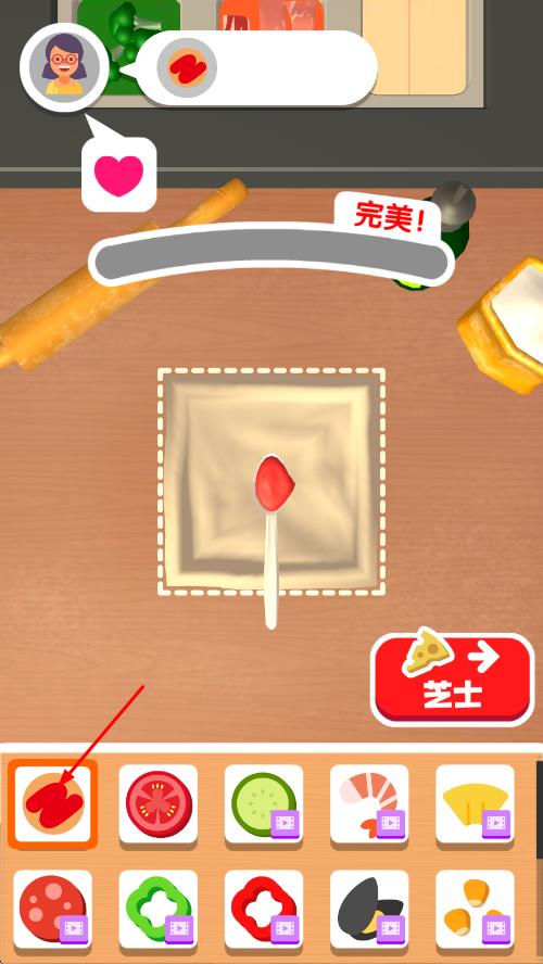1、進入游戲后接收首份客人訂單,從食材區(qū)選取面團、醬料等基礎(chǔ)材料,按照訂單要求開始制作第一份披薩。