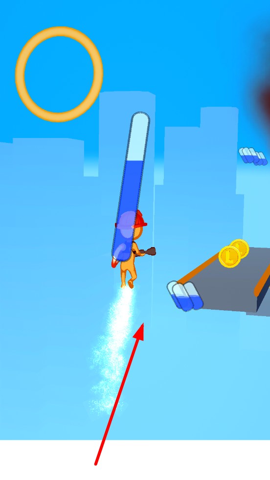 2、試管儲液滿格時,點擊屏幕觸發(fā)噴射飛行,跨越斷橋和高墻等障礙,并且在飛行中可拾金幣,擴容試管增儲液,強化跑酷能力。