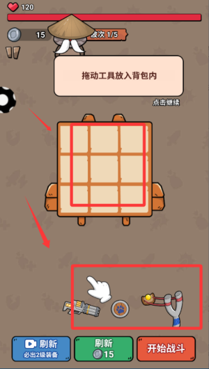 1、進(jìn)入游戲后先熟悉合成操作,把相同的低級(jí)獵手或道具合并升級(jí),逐步獲得更強(qiáng)的捕獵單位和裝備。