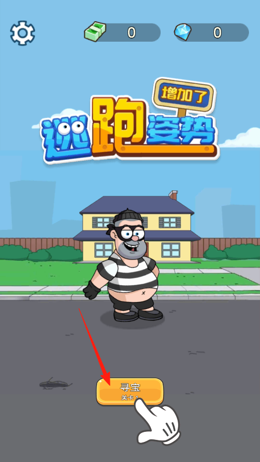 1、進(jìn)入游戲主界面,看到小偷角色站在房子前,點(diǎn)尋寶關(guān)卡1按鈕,開啟第一關(guān),要幫小偷在關(guān)卡里想辦法逃脫,完成挑戰(zhàn),看看第一關(guān)有啥難題等著解決。