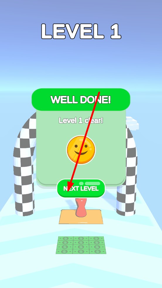 3、跑酷至終點,屏幕彈出WELL DONE,點擊NEXT LEVEL進(jìn)入新關(guān)卡,開啟新的復(fù)雜關(guān)卡,考驗玩家規(guī)劃能力。