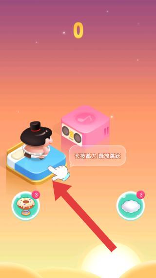 1、游戲開始后按住屏幕不松手,角色會自動蓄力準(zhǔn)備跳躍,按得越久跳得越遠(yuǎn),要注意掌握好力度。