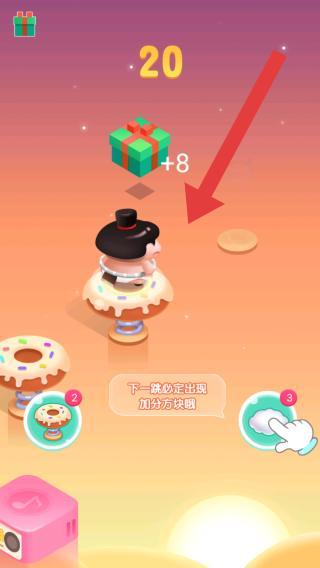 2、控制角色準(zhǔn)確的落到彩色平臺上就能夠獲得高分,連續(xù)跳中平臺中心位置可以獲得額外加分的獎勵。