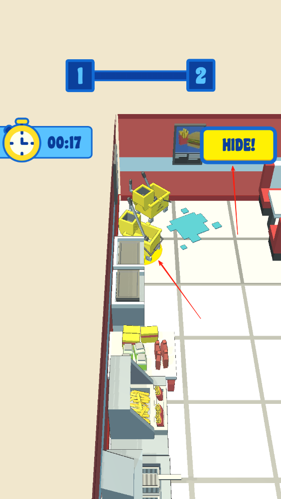 超市躲貓貓是一款以超市為場景的休閑躲貓貓作品,玩家將在真實還原的超市環(huán)境中,通過靈活走位躲避不同追擊者的追捕,有蒙面歹徒、持棒球棍的罪犯等多種追擊者,你需利用貨架、通道、貨柜等環(huán)境隱藏自己,在限定時間內(nèi)不被發(fā)現(xiàn)即可獲勝,既帶來躲藏的刺激感,又因操作簡單適合休閑解壓,讓玩家在超市的方寸之間體驗心跳加速的躲藏樂趣。