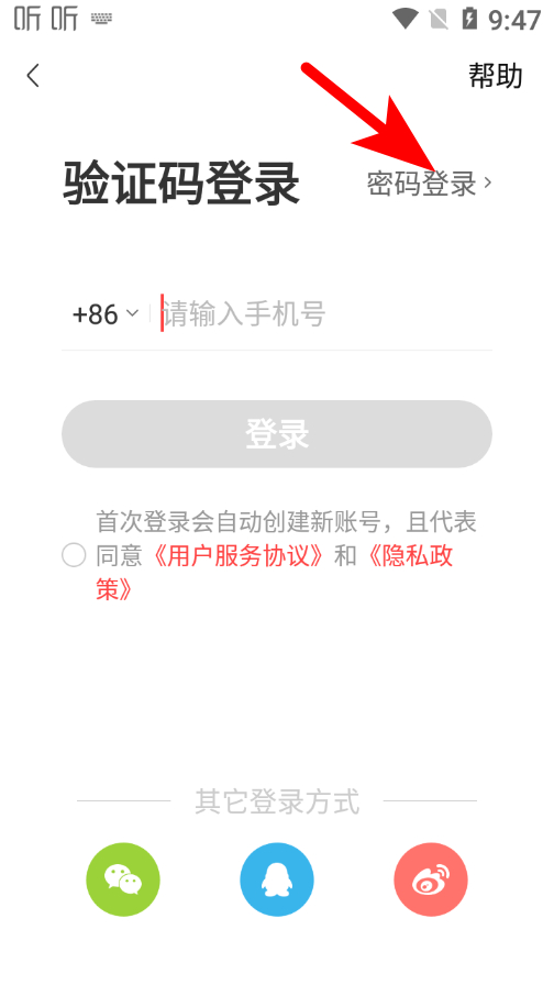3、在登錄頁(yè)面,需要點(diǎn)擊密碼登錄。